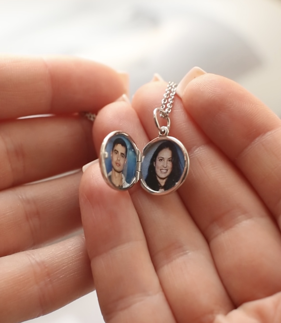 Виготовлений із срібла 925 проби з дзеркальною полировкою, він вміщує маленькі фото тих, хто завжди у серці.