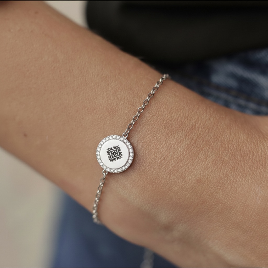 БРАСЛІТ КОЛО З КРИСТАЛАМИ З ВИШИВАНКОЮ ІМЕНІ, СРІБЛО