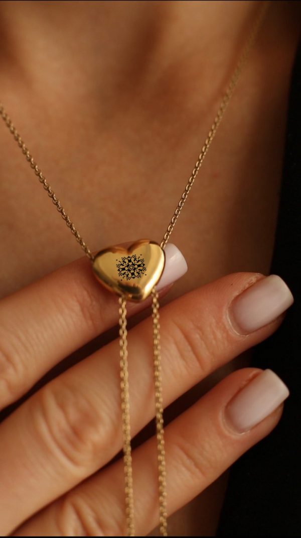 Колье у формі сердечка на ланцюжку, довжина 70 см, серце регулюється по довжіні ланцюжка.
