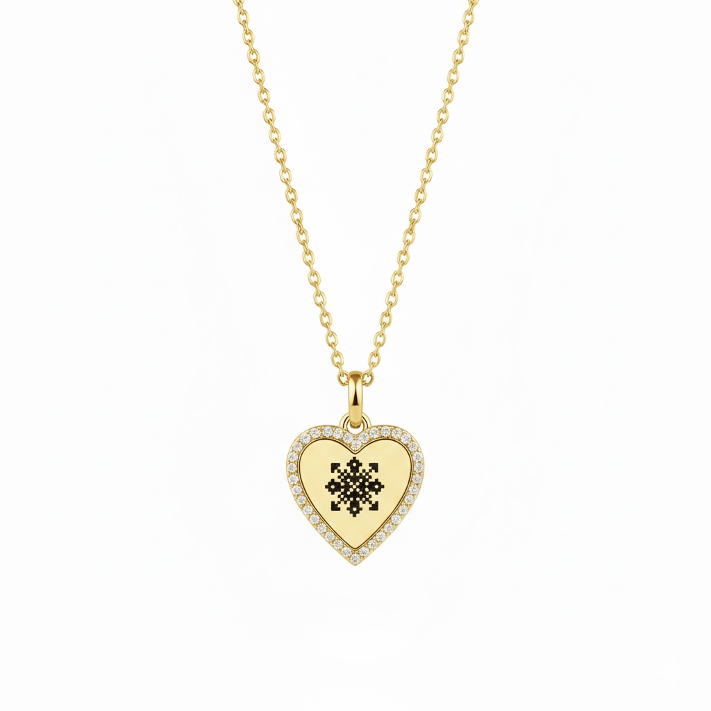КУЛОН СЕРЦЕ З КРИСТАЛАМИ З ВИШИВАНКОЮ ІМЕНІ, ПОЗОЛОТА