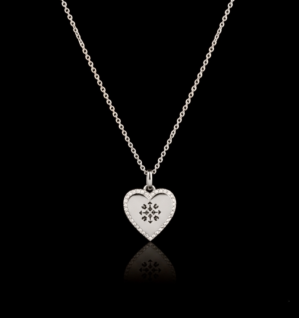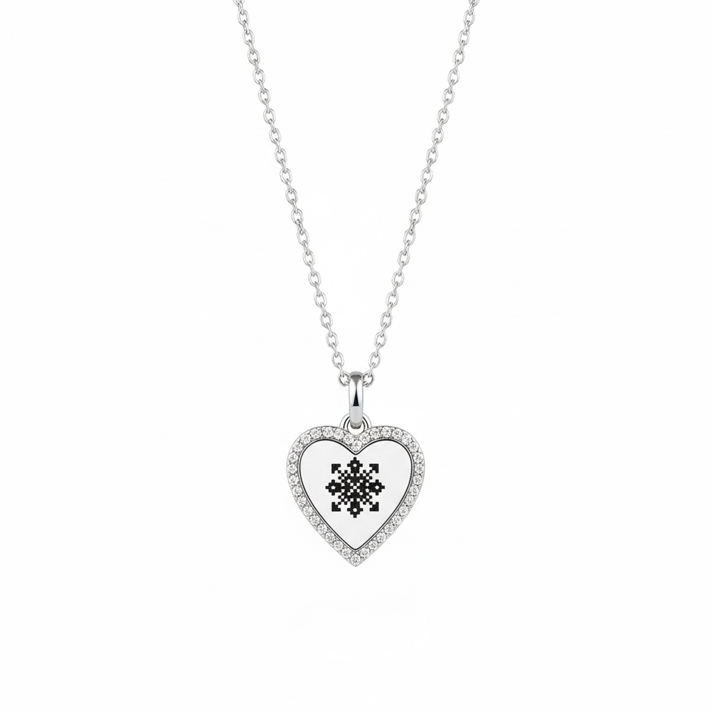КУЛОН СЕРЦЕ З КРИСТАЛАМИ З ВИШИВАНКОЮ ІМЕНІ, СРІБЛО