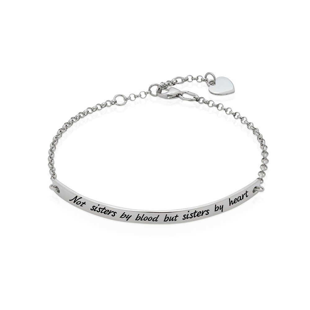 Срібний браслет із гравіюванням “Not sisters by blood by sisters by heart” – душевний подарунок для коханої подруги!