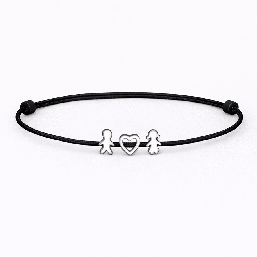 БРАСЛЕТ З ШАРМІКАМИ «ДІВЧИНКА, ХЛОПЧИК, КОНТУРНЕ СЕРЦЕ»